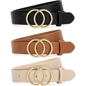 Women Waist Belts Faux Leather 3 Pack with Double O-Ring Buckle for Jeans
