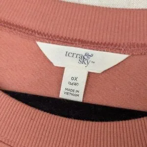 NWT Terra & Sky Plus Size 0X 14W Puff Sleeve French Terry Sweatshirt Coral Pink