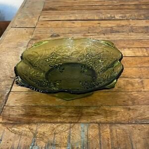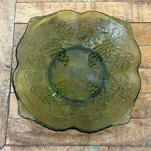 Vintage Square Green Glass Serving Dish Bowl Grapes & Leaves