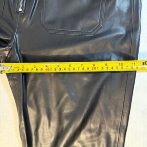 Veronica Beard Sz 8 pants Black Faux Leather High Waisted Wide Leg Crop elegant comfort timeless Veronica Beard black faux leather wide leg pants. These pants feature a high waist, a front zipper with a metal pull, and two functional back pockets. The wide leg silhouette offers a stylish and comfortable fit. Perfect for a night out or a chic daytime look.