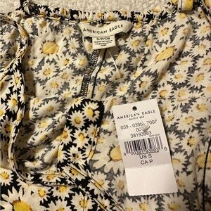 American Eagle AE Floral Button-Front V-Neck Mini Dress Sunflower