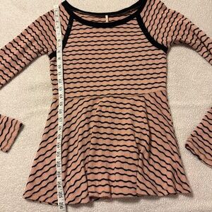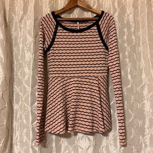 Free People Pink Black Wavy Stripe Pointelle Peplum Top