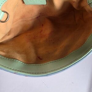 The suede-lined interior includes a single pocket. Please note: the interior shows visible makeup stains, reflected in the fair condition rating.