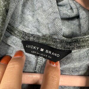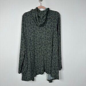 2/$30 Lucky Brand Open Front Hooded Cardigan Floral Print Olive Green XL #BAG9