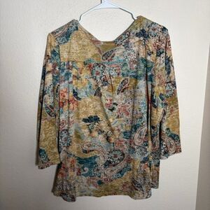 Coldwater Creek Blouse Women's XL Colorful Artsy 3/4 Sleeve Y2k Paisley Top