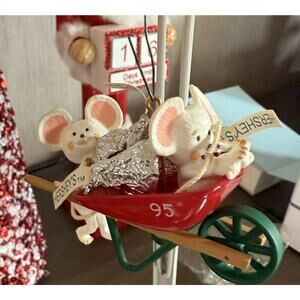 Hallmark 1995 Delivering Kisses Ornament Hershey’s Mice Wheelbarrow w/ Box