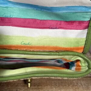 Coach Straw Leather Green Wristlet Clutch With Turnlock And Chain