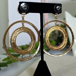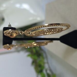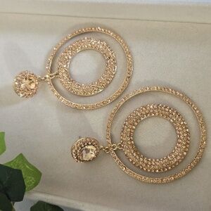 Statement Gold with Champagne Rhinestones Double Hoop Earrings