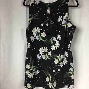 Size 12 black white floral romper top button closure on tank top straps. Top Shop brand.