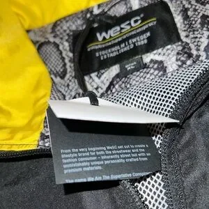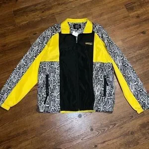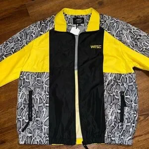 NWT WESC Black & Yellow Colorblock Snakeskin Retro Zip Up Track Jacket Size XL