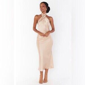 Show Me Your Mumu Champagne Jasmine Midi Halter Dress M