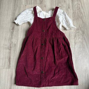 Velour? velvet? Racerback jumper dress and eyelet shirt underneath