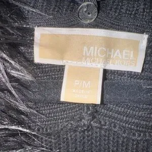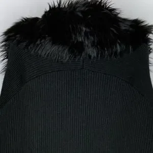 Michael Kors Black Sweater Knit Shrug Vest w/ Belts & Faux Fur Collar Medium P