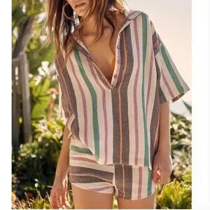 Free People Multicolor Striped Button Down Shirt
