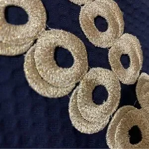Beautiful designer dress in excellent condition, smoke and pet free home, Chic navy midi dress with eye-catching gold details. Perfect for stylish outings.