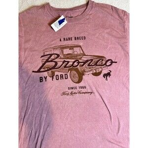 The product is a rare breed Ford Bronco-themed light pink faded unisex t-shirt in size M. Made by the brand Ford, this regular fit t-shirt features short sleeves and is designed for unisex adults. With a theme centered around cars, this unique and stylish piece is perfect for car enthusiasts looking to add a touch of automotive flair to their wardrobe.