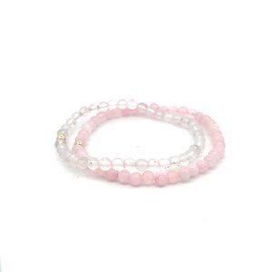 Moonstone & Rose Quartz Gemstone Stretch Bracelet with 14K Gold Accent Bead Hand