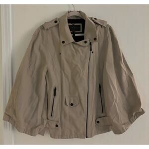 BCBGMaxAzria, size large, khaki colored utility cape jacket. Good, preowned condition!
