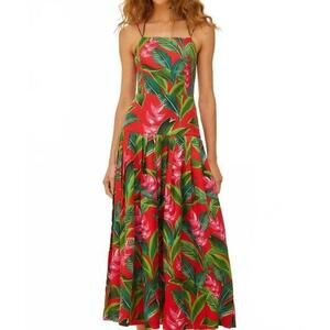 NEW, Farm Rio Red Dream Garden Lenzing Ecovez Euroflax Maxi Dress Size M