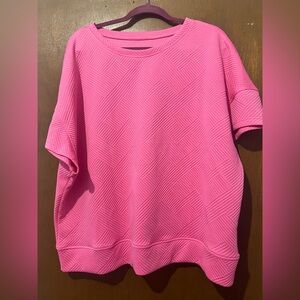Two piece Outfit, Lounge Set, Pajamas Set, Crewneck, cable knit, short sleeve pullover top, pants with elastic waist, two pockets, solid color, and oversized loose fitting, create a relaxed and slouchy silhouette. This outfit is a versatile addition to your wardrobe.