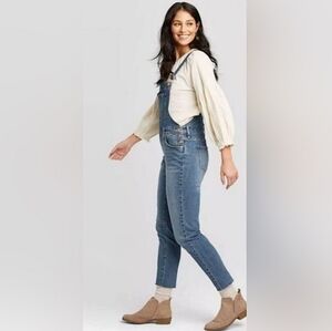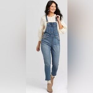 Universal Thread High-Rise Raw Hem Tapered Crpped Denim Overalls. Soft and Stretchy Fabric for Long-Lasting Comfort. Multiple Pockets, Side Buttons, and Adjustable Straps. Excellent Like New Condition.