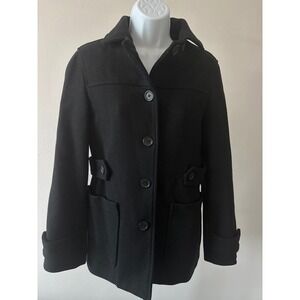 Minimalist Black Wool Blend Coat Size S Button Front Stand Collar Winter Jacket