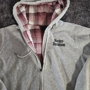 Harley-Davidson Gray Jacket with Pink Plaid Interior Size XXL