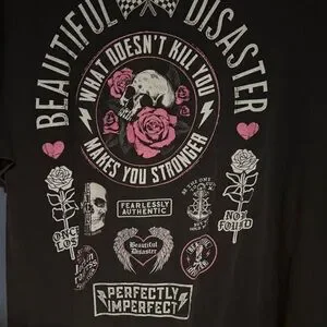 Embrace your fearless style with the Beautiful Disaster black short sleeve tee. Perfect for casual outings, this top combines comfort with a bold statement.