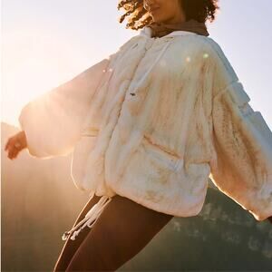 Free People Movement | Take a Moment Ivory Faux Fur Hooded Oversized Jacket