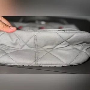 Elegant gray quilted bag with charming floral accents. Crossbody Strap Handbag,great condition