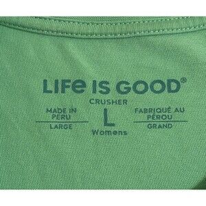 LIFE IS GOOD Green Crusher Tee Graphic Shirt Beach Palm Trees Sun Hammock Peace Tropical Women's Size Large