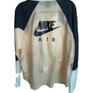 The Nike Women’s Air Jacket focuses on breathable coverage so that you can focus on your route. Mesh panels under the arms help to stop you over heating while the off-centre zip lets you adjust your ventilation and coverage.Water repellent fabric works with the high collar and adjustable cuffs to provide protection from the elements. Bold Nike Air branding front and back give an edge to the design that stands above the crowd.