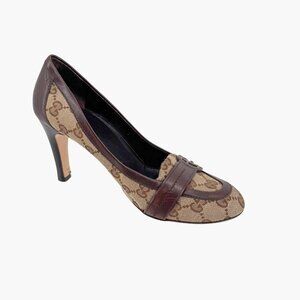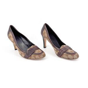 Gucci Interlocking G Beige GG Logo Canvas Heels Pumps Size 7 Women
