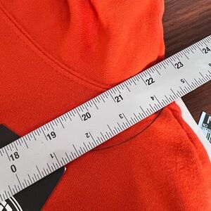 Stylish orange and black hockey hoodie with lace-up front. Features bold logo design.