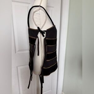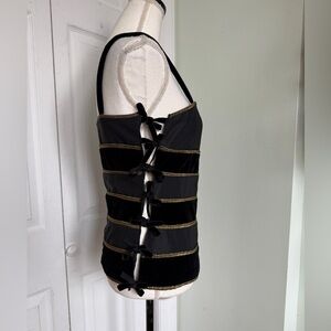 Late 1980s Gianni Versace Black and Gold Baroque Velvet Silk Corset Top Sz Large