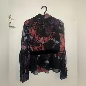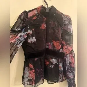 Ted Baker Black Floral Sheer Blouse
