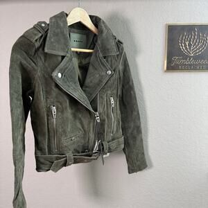 Women's Blank NYC Olive Green 100% Leather Suede Motorcycle Jacket Size XS NEW