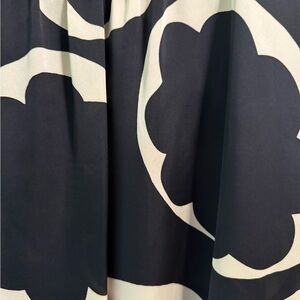 Chic and modern sleeveless shift dress by Glam, featuring a bold oversized ivory floral print on a black background. Subtle pleating at the neckline and a bubble hem add volume and movement for a flattering silhouette. Pull-on style, unlined.