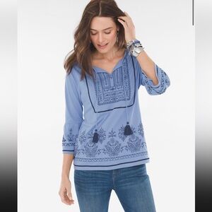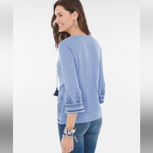 ☑️NWT Chico’s Embroidered Peasant Blouse Tie Tassels 3/4 Bell Sleeve XL 3