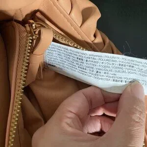 This stylish and on-trend twisted strap baguette bag by Mango has enough space to hold your essentials. Featuring gathered details, a short twisted strap, and upper zip fastening, it helps you show off your rocker style. Material- Polyurethane; Lining- Polyester. Mini sized bag, 10.63" H x 2.76" W x 5.12" D