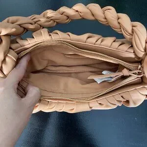 Mango Twisted Strap Baguette Bag Small Underarm Shoulder Bag Zipper Closure