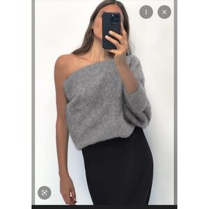 NWT Zara Size Small Black Alpaca Blend Asymmetric Poncho Sweater One Sleeve