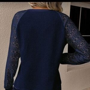 Navy Lace Sleeve Sweater