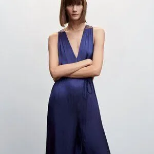 NWOT Mango Satin cross-back jumpsuit blue Size Small
