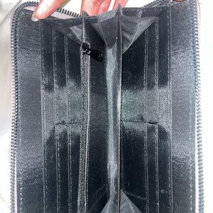 Chic Ed Hardy wallet in taupe with black accents. Features signature design. Perfect for stylish organization. Like new. Open to offers.