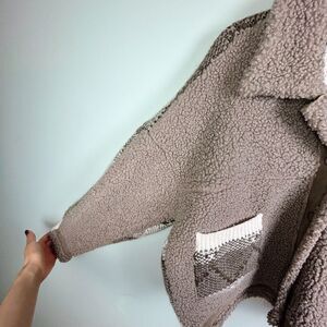BLANKNYC Sherpa Button Front Jacket Comfort Queen Taupe Teddy Coat Knit Back XS