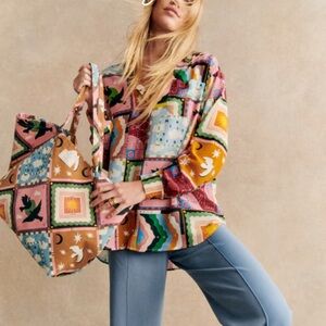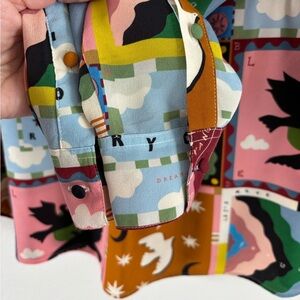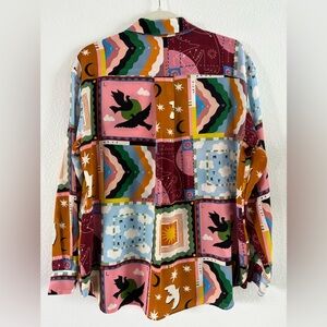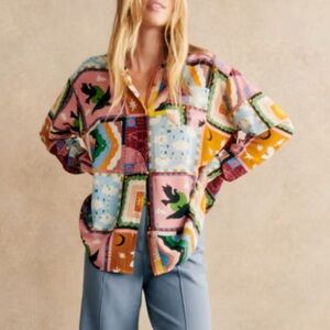 SÉZANE X PANGEA MAX SHIRT 100% Silk Button Down Long Sleeve Patchwork Multicolor