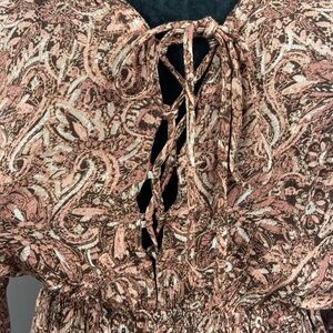 American Rag Paisley Print Romper with Bell Sleeves and Tie Front. 1 Button on Back. Elastic Waist.