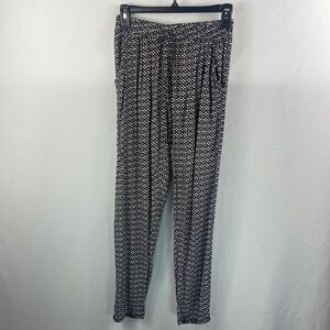 Elisa Immagine Black and White 100% Cotton Floral Print Lightweight Pants