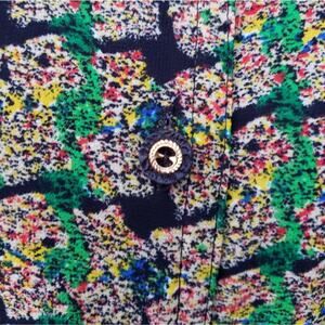 Keywords: womens shirts tops blouses pads vtg retro spring summer fall seasonless all seasons art to wear up business casual large medium printed pattern patterned